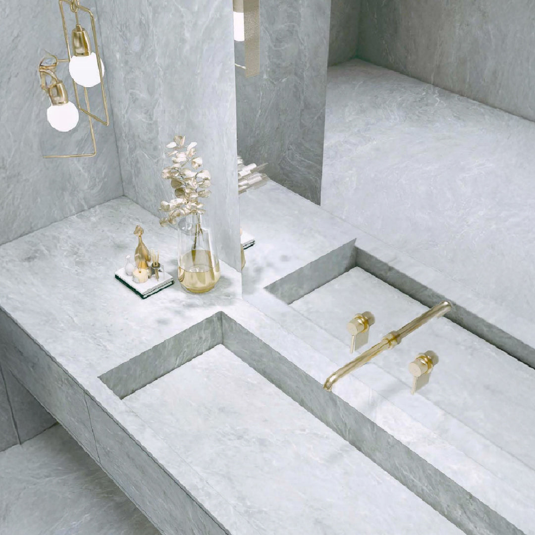 - Jumbo Slab Format — Large panels minimize joints for a seamless aesthetic