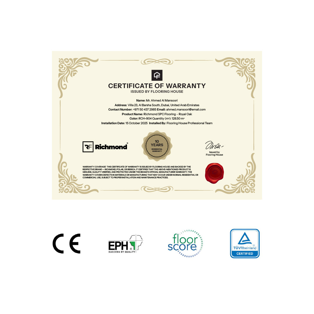 Richmond Flooring combines British design heritage with modern SPC technology to create floors that are stylish, durable, and engineered for long-term performance. Each collection is crafted with premium textures, refined finishes, and advanced construction to suit modern homes and commercial interiors. Waterproof, scratch-resistant, and built for the UAE climate, Richmond delivers exceptional quality you can trust.